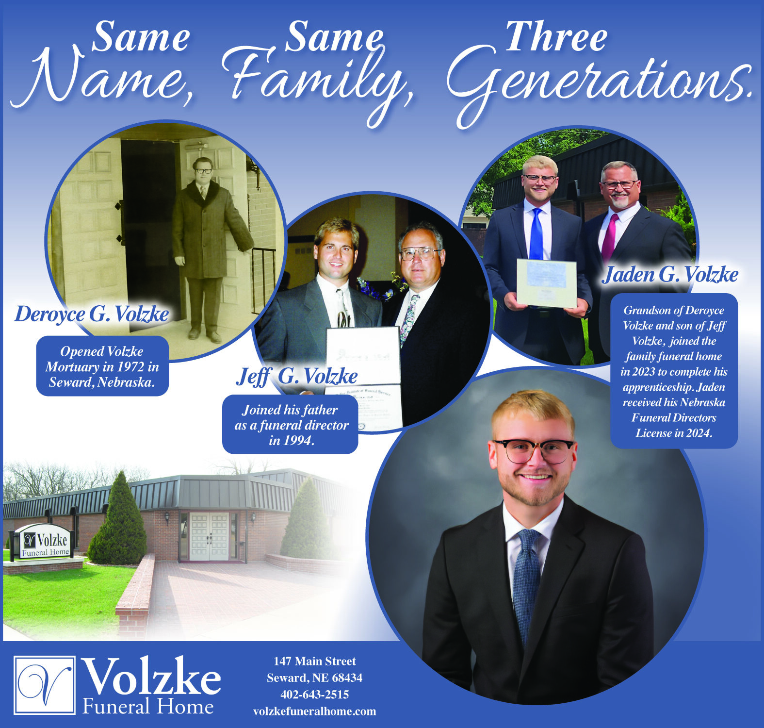 In 1972, Deroyce Volzke opened Volzke Mortuary in Seward, Nebraska. He was the sole operator until 1994 when his son, Jeff, joined his father as a funeral director in the family business. The name was changed to Volzke Funeral Home. After Deroyce’s retirement in 2016, Jeff took ownership of the funeral home. Volzke Funeral Home is the only funeral home in Seward County that has been owned and operated by the same family for over 51 years.